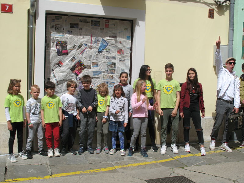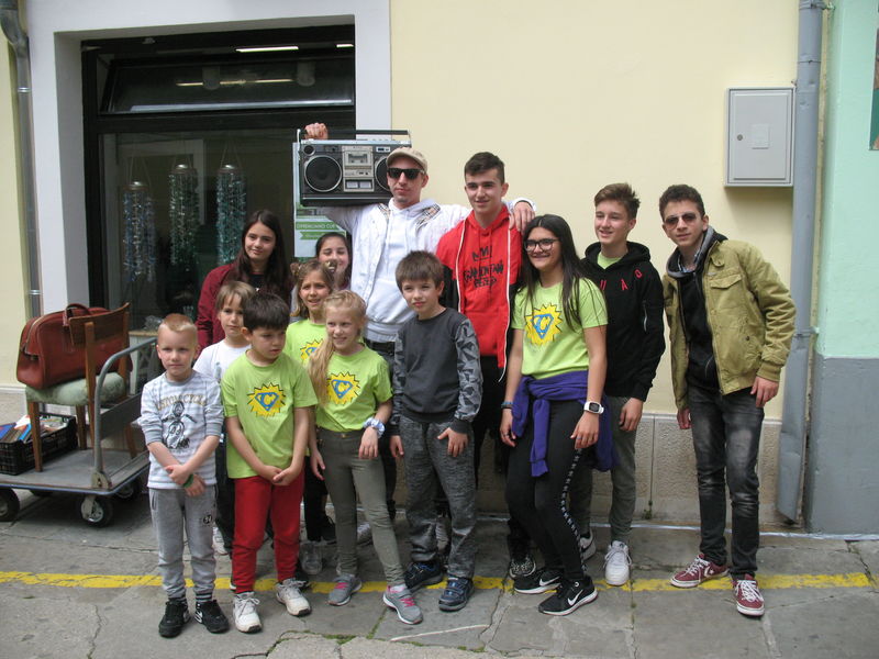 Dopo i discorsi ufficiali, gli alunni hanno accompagnato il rapper Drill nell’esecuzione della canzone “Svet samo tvoj je”.