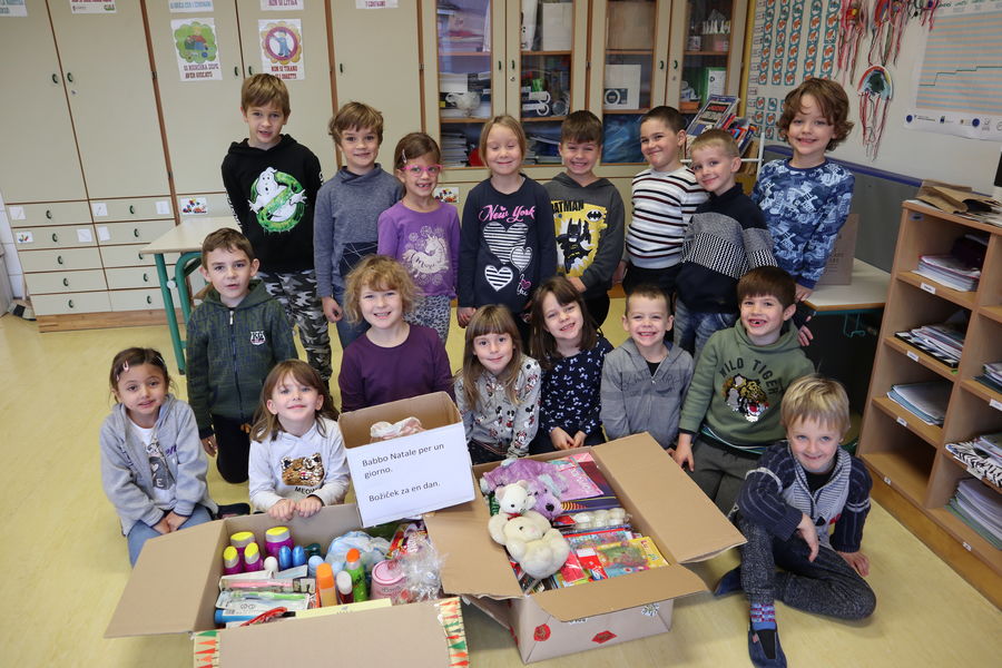 È il mese che i piccoli attendono con più gioia al pensiero dei salti di felicità che faranno quando apriranno curiosamente i regali. Dato che molti bambini in Slovenia per diversi motivi sociali non possono provare questa stessa sensazione, la nostra scuola ha cercato di dare loro un aiuto per non sentirsi esclusi dalle festività, aderendo all’iniziativa umanitaria ''Božiček za en dan''.