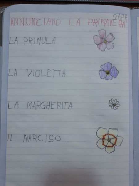 Anche gli alunni della I classe si impegnano moltissimo per imparare e svolgere tutte le attività che vengono assegnate a distanza. Con il prezioso aiuto dei genitori inviano regolarmente le immagini dei quaderni nei quali gli alunni scrivono con molta cura e i video nei quali leggono e cantano.
