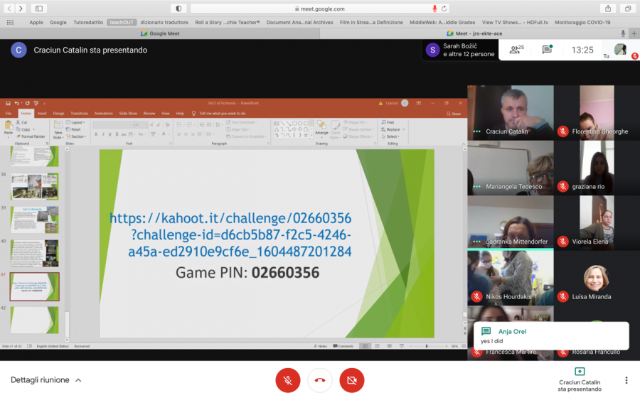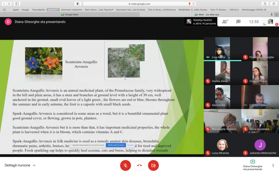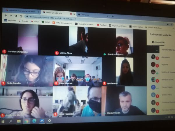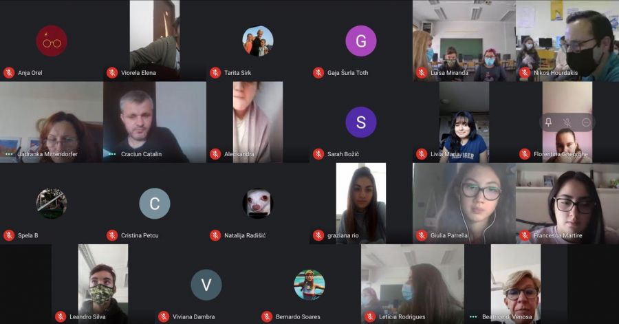 La prima cosa che si poteva notare online era che gli alunni greci si trovavano a scuola, come anche alcuni portoghesi, mentre gli studenti italiani (pugliesi), romeni e i nostri in Slovenia erano collegati in videoconferenza da casa. Tutto ciò accade a causa delle diverse situazioni Covid19 attuali nei paesi partner.