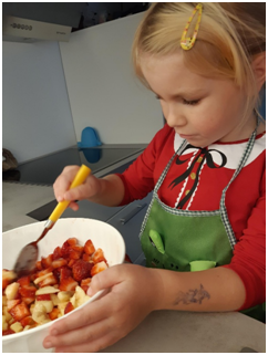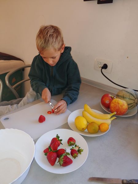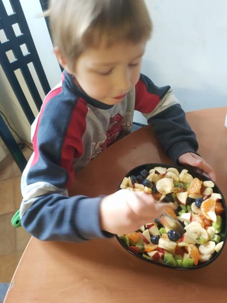 Per il compito di sloveno in I classe, gli alunni hanno dovuto seguire le indicazioni nel quaderno attivo per la preparazione della macedonia (sadna solata) e prepararla poi con l'aiuto dei genitori.