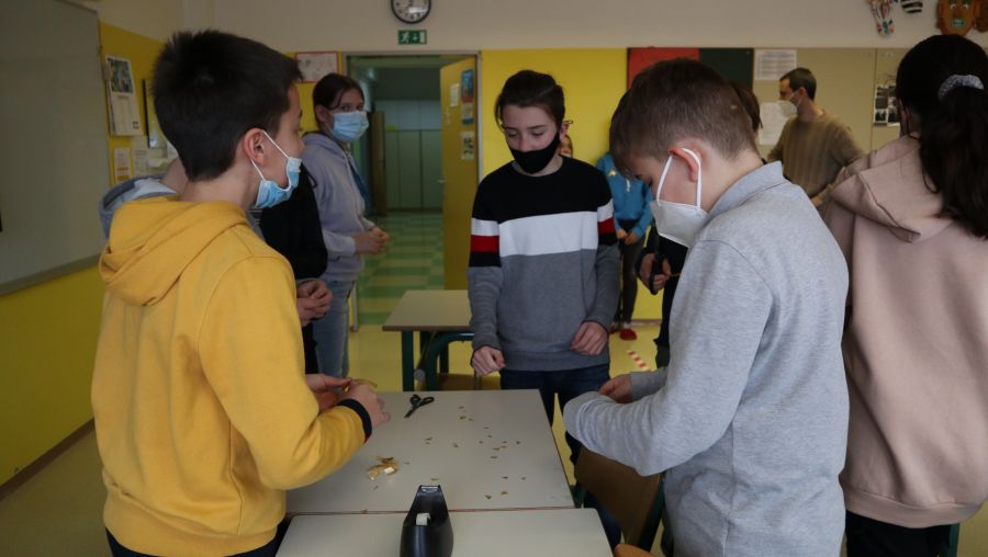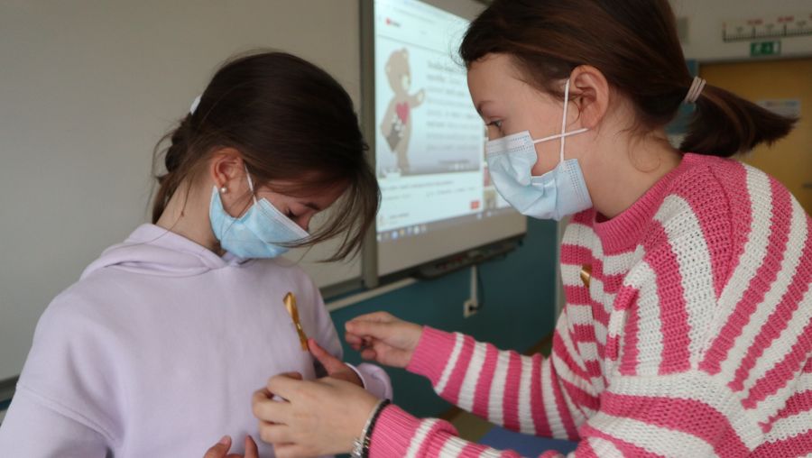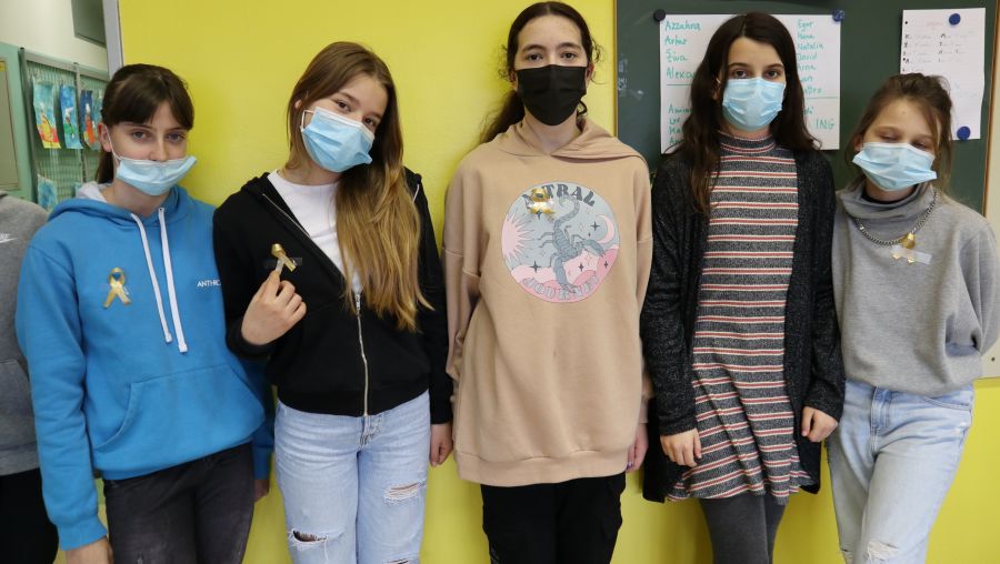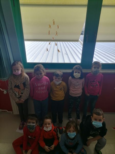 Durante la mattinata, gli alunni hanno voluto testimoniare la loro solidarietà con il nastrino attaccato negli ambienti scolastici: sulle porte, sulle finestre e sul petto coinvolgendo a casa familiari e amici.