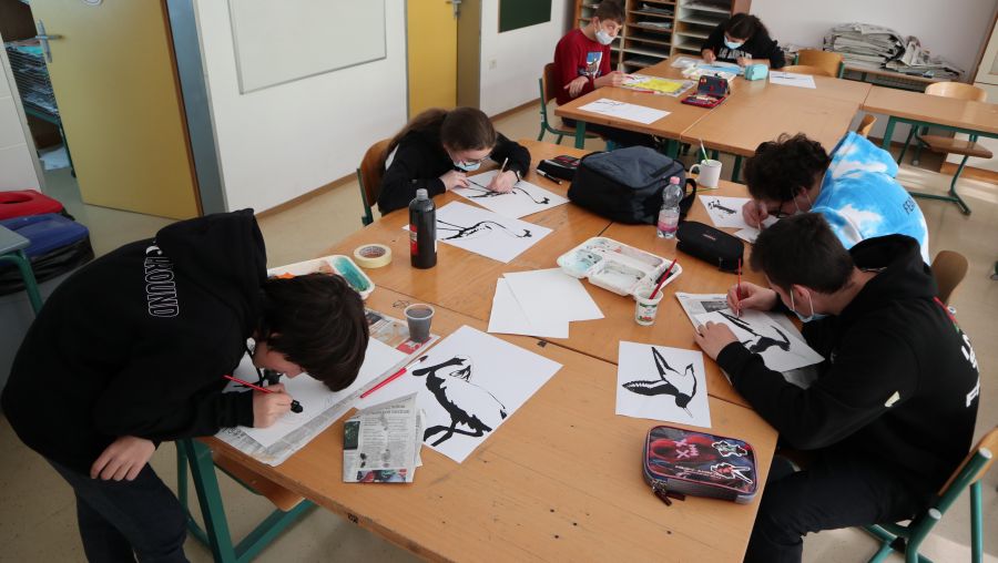 Per il resto della giornata, gli alunni di IX classe hanno potuto dare sfogo alla propria vena artistica creando una serie di disegni che rappresentano gli animali (in questo caso uccelli) e le piante tipiche di un habitat così particolare e unico per la nostra regione. I ragazzi hanno rappresentato vari motivi con silhouette chiare e nitide per rendere il soggetto facilmente riconoscibile, inoltre hanno provato a riprodurre il paesaggio delle saline con specifiche tonalità di colore. Come risultato, sono state realizzati dipinti moderni ed eleganti, che verranno incorniciati ed appesi negli ambienti scolastici.