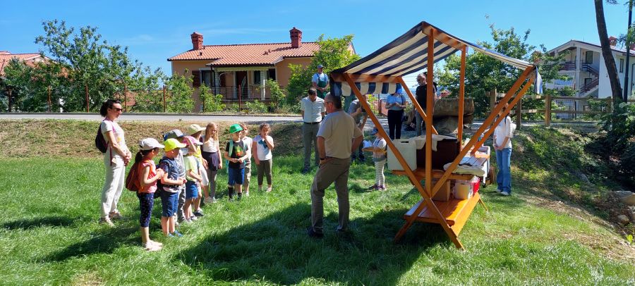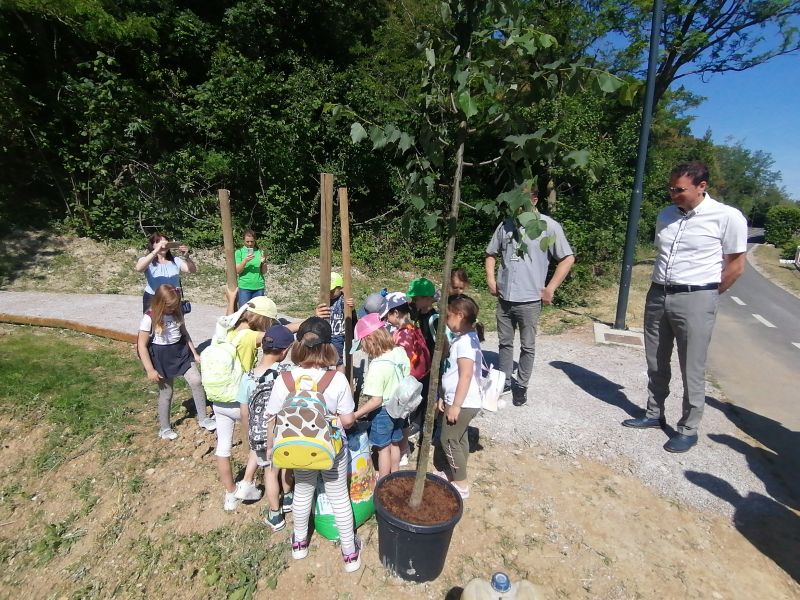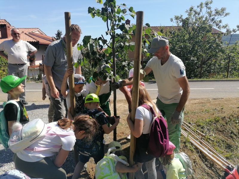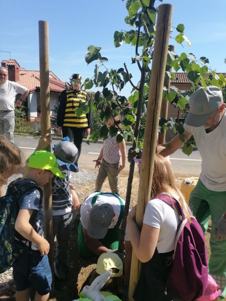 Sotto l’ombra degli alberi hanno ascoltato in cosa consiste il lavoro di un apicoltore e poi assieme al direttore dell’Azienda pubblica Komunala e al sindaco di Isola hanno piantato un albero di tiglio.