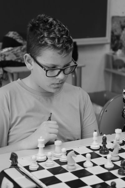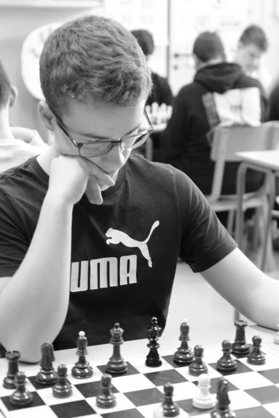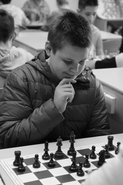 Ma andiamo per ordine. Ci presentiamo alla scuola slovena di Sicciole con ben cinque giocatori: dal momento che le scacchiere di ogni incontro sono quattro, abbiamo la possibilità di fare qualche sostituzione fra una partita e l’altra, in modo da far partecipare tutti e dare un po’ di riposo a chi ne ha bisogno. In prima scacchiera c’è Yelizaveta Lazareva, un nome che forse tanti ricordano quando ancora da bambina dava battaglia ottenendo ottimi risultati non solo nei tornei scolastici ma anche in quelli federali; adesso è cresciuta, frequenta l’VIII classe, e anche se non gioca da qualche anno è sempre la nostra migliore giocatrice. In seconda schieriamo Martin Kekič, IX classe, che porta con sé l’esperienza di un anno di scacchi come materia opzionale e una discreta passione per gli scacchi online. In terza abbiamo Genrikh Starovoit, VII classe, che frequenta la nostra scuola dallo scorso settembre e ha una buona impostazione teorica maturata in diversi anni di corsi di scacchi. In quarta gioca Martin Krajcar, IX classe, che con un sano spirito da autodidatta si è avvicinato alla disciplina con entusiasmo e volontà. Pronto a subentrare per dare il cambio a qualche compagno, c’è anche Matthew Pečar, VII classe, che da settembre frequenta la materia opzionale scacchi con impegno e motivazione.