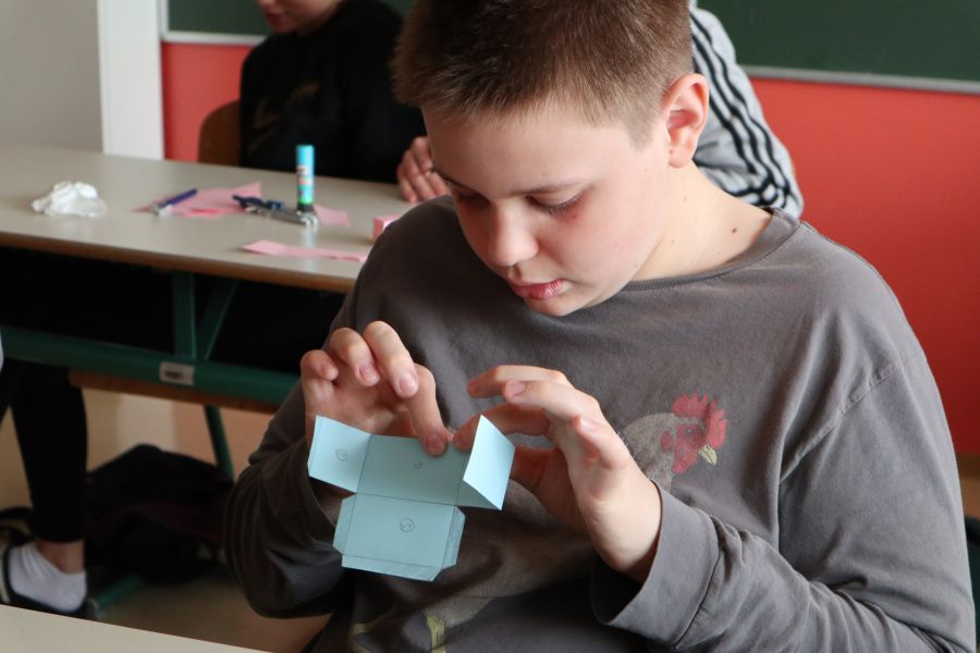 In primo luogo hanno scelto il solido che desideravano rappresentare; ogni discente ne ha scelto uno diverso dagli altri, successivamente ciascuno ha riprodotto in autonomia o con l’aiuto dell’insegnante lo sviluppo in pianta del solido da costruire. A seguire tutti si sono applicati con impegno e precisione: il risultato è stato entusiasmante! Per tanto, i ragazzi hanno dimostrato le loro capacità, fondate sulle proprie “solide“ qualità intellettive e umane, sulle consolidate competenze. Complimenti a tutti voi!