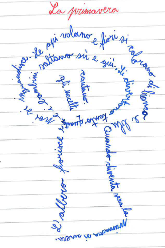 Il caligramma a forma di albero è stato creato dagli alunni: Gloria Gasperini, Lapo Karbič, Iva Gornjec, Žiga Aurin, Marija Iličić