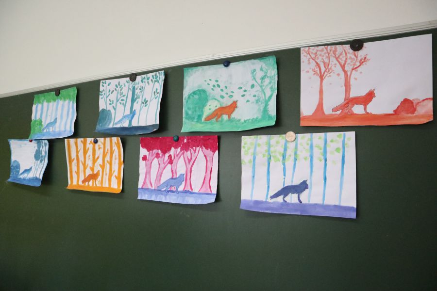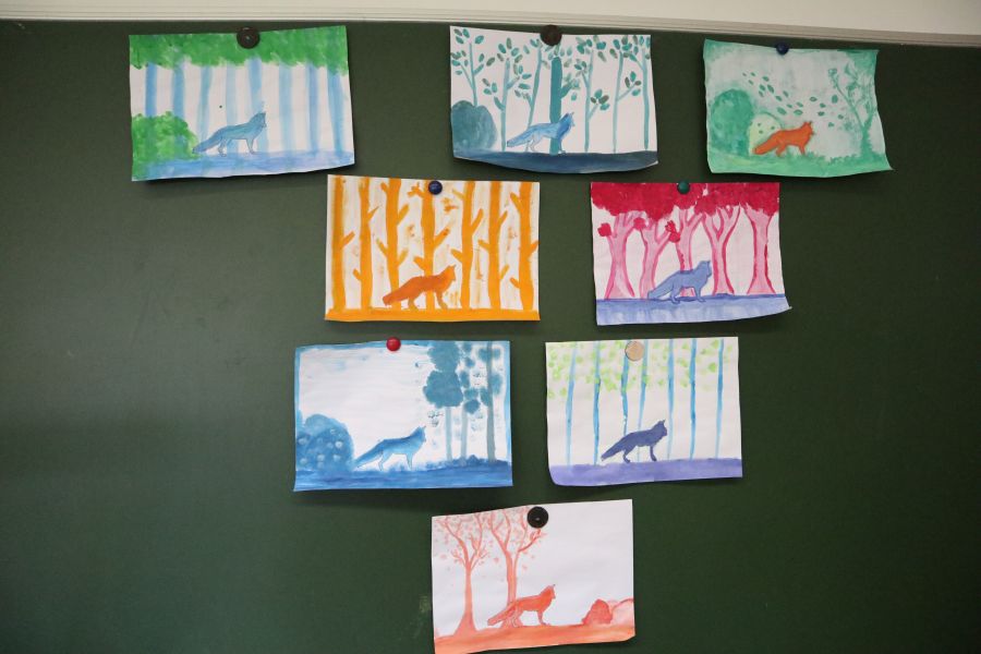 Dovevamo disegnare una volpe con diversi colori e sfumarli. Io ho disegnato una volpe di color arancione, con lo sfondo verde.