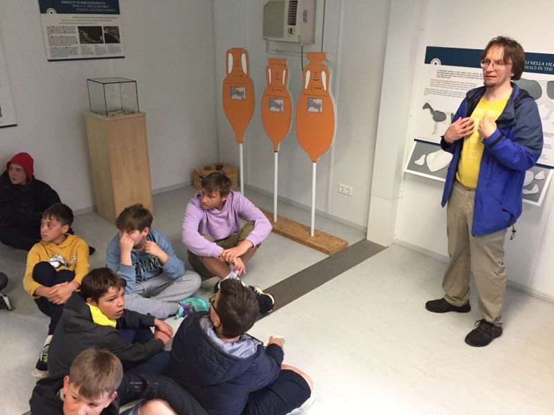 Oltre alla visita dei resti archeologici, le guide ci hanno proposto una serie di attività ludico-didattiche all’interno di alcuni container, nei quali sono state allestite esposizioni di materiale autentico e ricostruzioni, il tutto finalizzato ad illustrare più efficacemente tutti gli aspetti architettonici, materiali e culturali legati all’epoca romana.