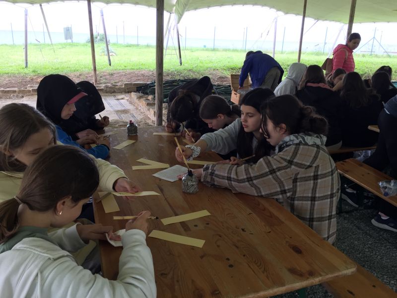 La visita si è conclusa con un bellissimo laboratorio sulla scrittura, durante il quale gli alunni hanno provato ad imitare lo stile grafico antico utilizzando delle efficaci riproduzioni degli stili romani, ricavati da canne di bambù appositamente intagliate.