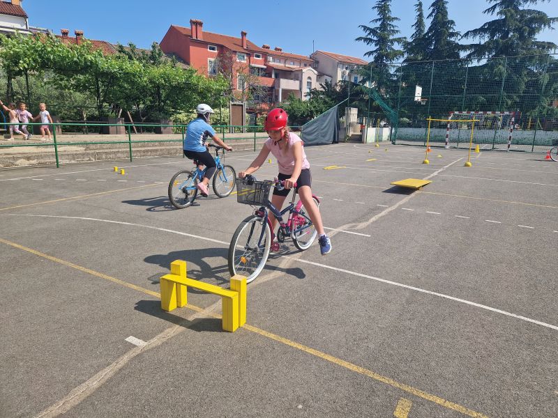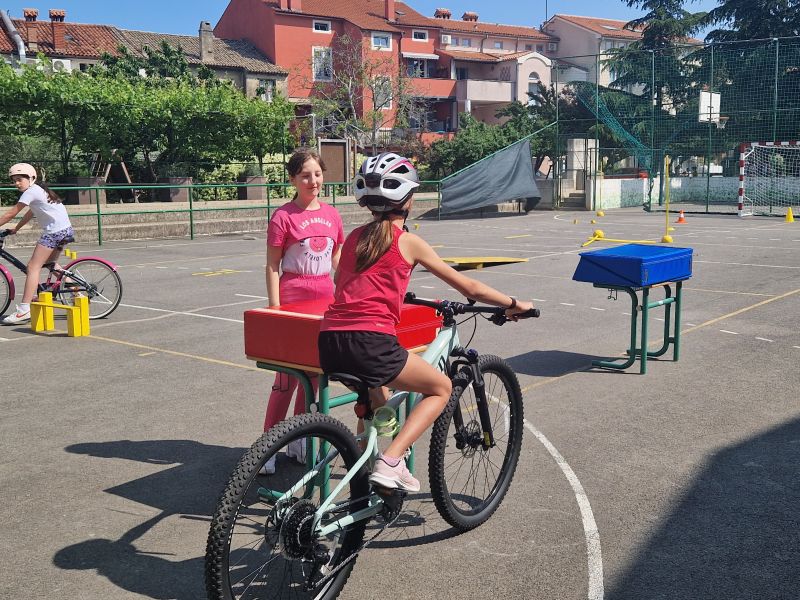 La giornata è iniziata con la sistemazione delle varie postazioni del percorso ad ostacoli (poligono di abilità) e con alcuni primi giri di prova. È proseguita con il controllo delle biciclette da parte del poliziotto e la merenda.