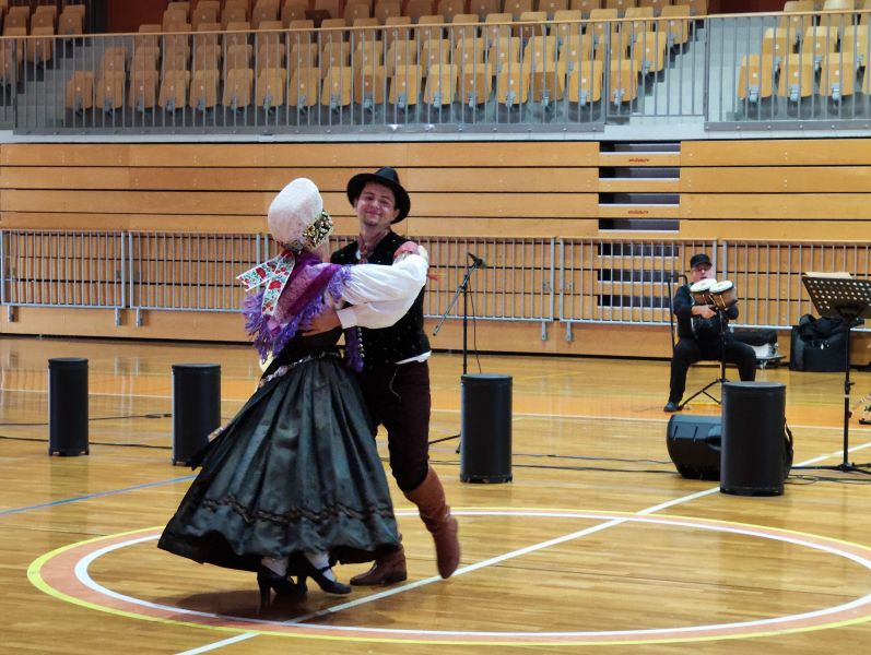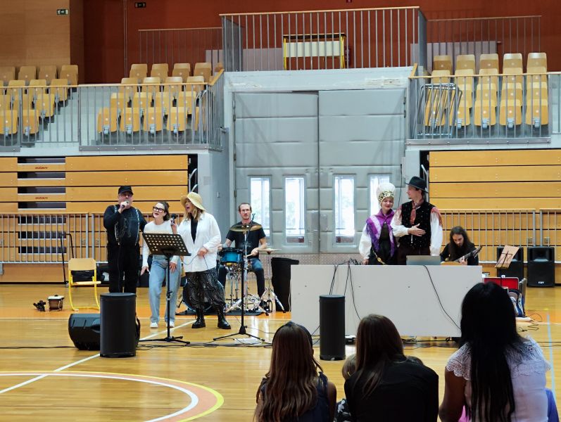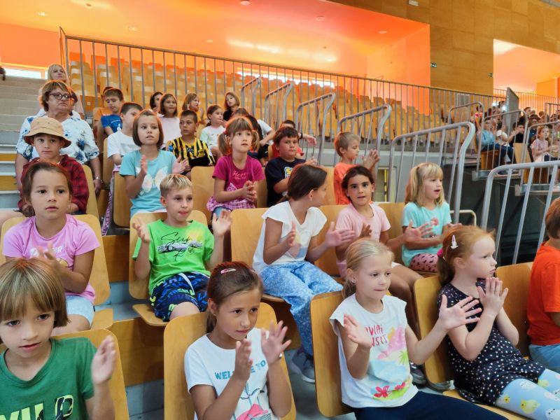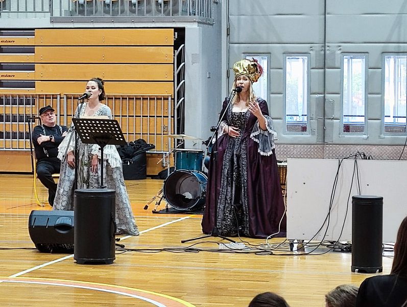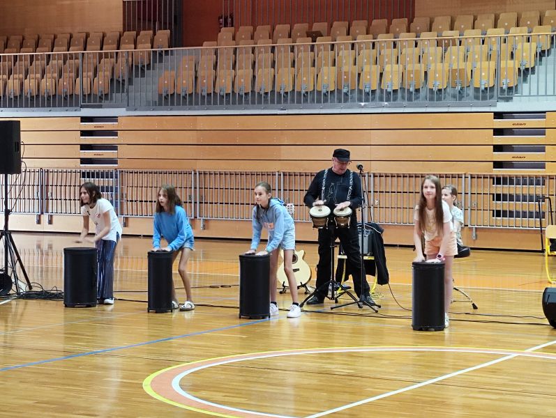 Durante il programma musicale sono state presentati diversi numeri. Uno di questi era il canto di un’opera lirica eseguita in duetto e in costumi d’epoca. Seguiva l'ascolto delle percussioni africane dei musicisti e dei bambini volontari che assieme hanno interpretato una canzone dei Queen. Dopodiché due ragazzi si sono presentati con la polka indossando abiti folcloristici tradizionali sloveni. Infine gli alunni hanno gareggiato in indovinelli musicali nei quali dovevano ascoltare attentamente le basi musicali delle canzoni popolari e individuarne i titoli nonché cantarli. Avevano modo di sentire vari tipi di canto che si differenziavano in diversi generi musicali come il rock, il pop, la musica classica, la musica popolare e altri.