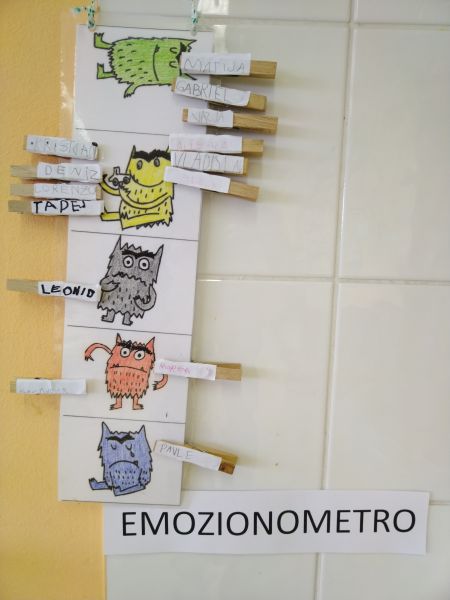 Dopo la lettura del libro pop-up "Il libro delle emozioni", hanno descritto le varie emozioni con la creazione di "mostri delle emozioni" e la realizzazione di un semplice emozionometro associando le emozioni ai colori.