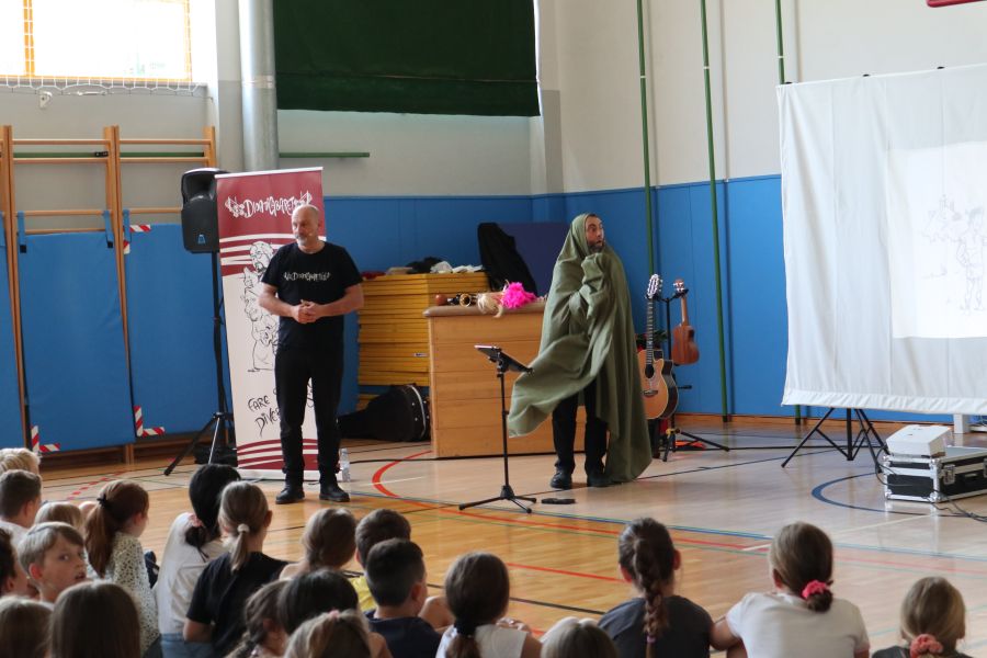 Gli alunni delle classi I, II e III delle scuole italiane di Capodistria, Pirano e Isola hanno assistito alla rappresentazione teatrale "Il barone di Münchausen", mentre gli alunni delle classi IV, V e VI hanno assistito alla rappresentazione "I miti greci in 60 min”.