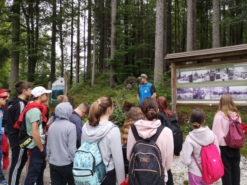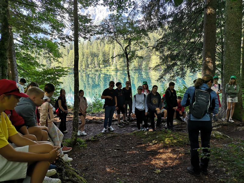 Nella visita al Monte Lussari gli studenti hanno preso una funivia fino alla cima per ammirare uno spettacolare panorama, sviluppando un profondo apprezzamento per la natura circostante. L'attività più amata è stata il dog trekking. Gli alunni hanno interagito con cani da traino, imparando l'importanza del rispetto per gli animali e delle attività all'aria aperta, il che ha suscitato emozioni positive e un amore per la natura. Durante un’escursione guidata attorno ai laghi di Fusine, gli studenti hanno scoperto la fauna e la flora locali, rimanendo affascinati dalla bellezza del paesaggio. Gli alunni hanno provato l'emozionante sport dell'arrampicata, apprendendo le basi della disciplina sotto la guida esperta di un istruttore, sviluppando forza fisica e fiducia in sé stessi. Una passeggiata naturalistica ha permesso agli studenti di conoscere meglio la flora e la fauna locali. Gli alunni hanno visitato l'Abschnitt Seisera, un sito storico della Prima Guerra Mondiale, esplorando trincee e rifugi utilizzati durante il conflitto e apprendendo la storia della regione. Infine, la visita alla miniera di Raibl ha offerto agli alunni l'opportunità di comprendere i processi di estrazione mineraria, sviluppare una consapevolezza ambientale e apprezzare l'importanza storica ed economica delle risorse naturali.