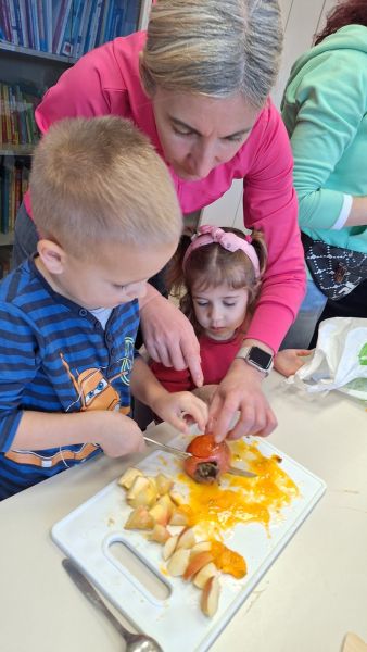 Un’altra esperienza indimenticabile è stata la giornata dedicata alla musica, durante la quale i bambini hanno l’opportunità di cantare alcune canzoni amate dai più piccoli, tra cui La bella lavanderina, La castagna dispettosa, Palloncino Blu e Come un pittore, accompagnati alla chitarra dalla gentile collaborazione di Maksim Vergan. Alla fine, i bambini si sono dilettati a sperimentare strumenti e ritmi, scoprendo il piacere di creare armonie insieme.