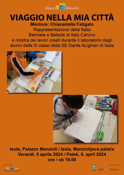 Kulturni večer – Potovanje po mojem mestu. Predstavitev del, učencev OŠ Dante Alighieri Izola, pripravljenih na delavnici o arhitekturi mesta Izola pod mentorstvom Chiarastelle Fatigato. Razstava elaboratov učencev.